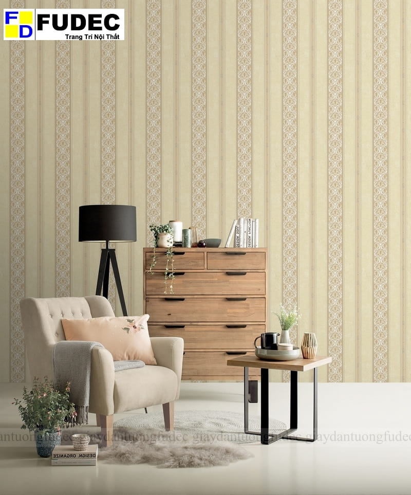 Mẫu giấy dán tường 8617-2 gây ấn tượng với thiết kế sọc dọc xen kẽ hoa văn cổ điển tinh xảo, kết hợp gam màu vàng kem ấm áp. Đây là lựa chọn lý tưởng cho những ai yêu thích phong cách tân cổ điển sang trọng, giúp không gian vừa ấm cúng, vừa đẳng cấp.